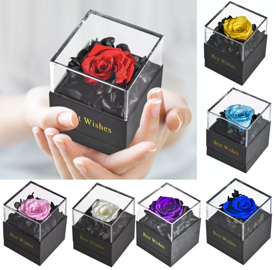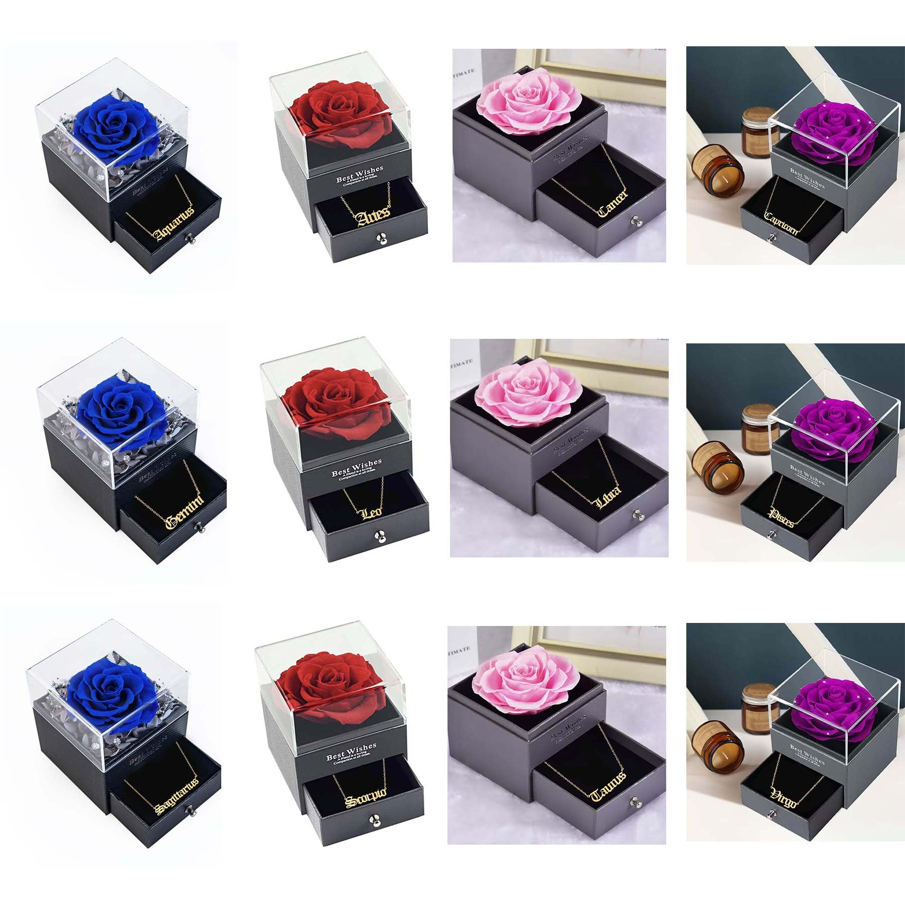Preserved rose is displayed in an elegant jewelry box which has a small drawer itself. There is a real gold plated necklace inside the Drawer. The rose jewelry box is a best gift for your beloved one.