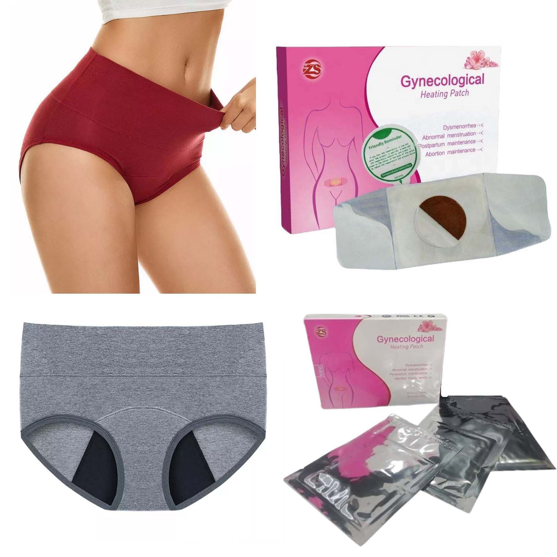Women's Menstrual Period Cotton Leak-Proof Underwear Panties (1pc) + Period Pain Relief Patches (3 pc)