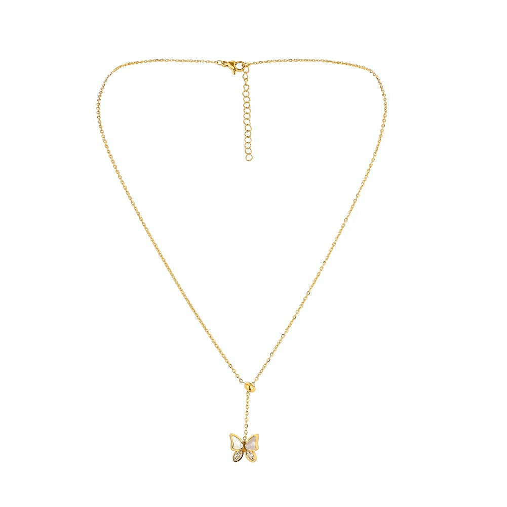 18K Gold Plated Butterfly Drop Necklace Stainless Steel Necklace