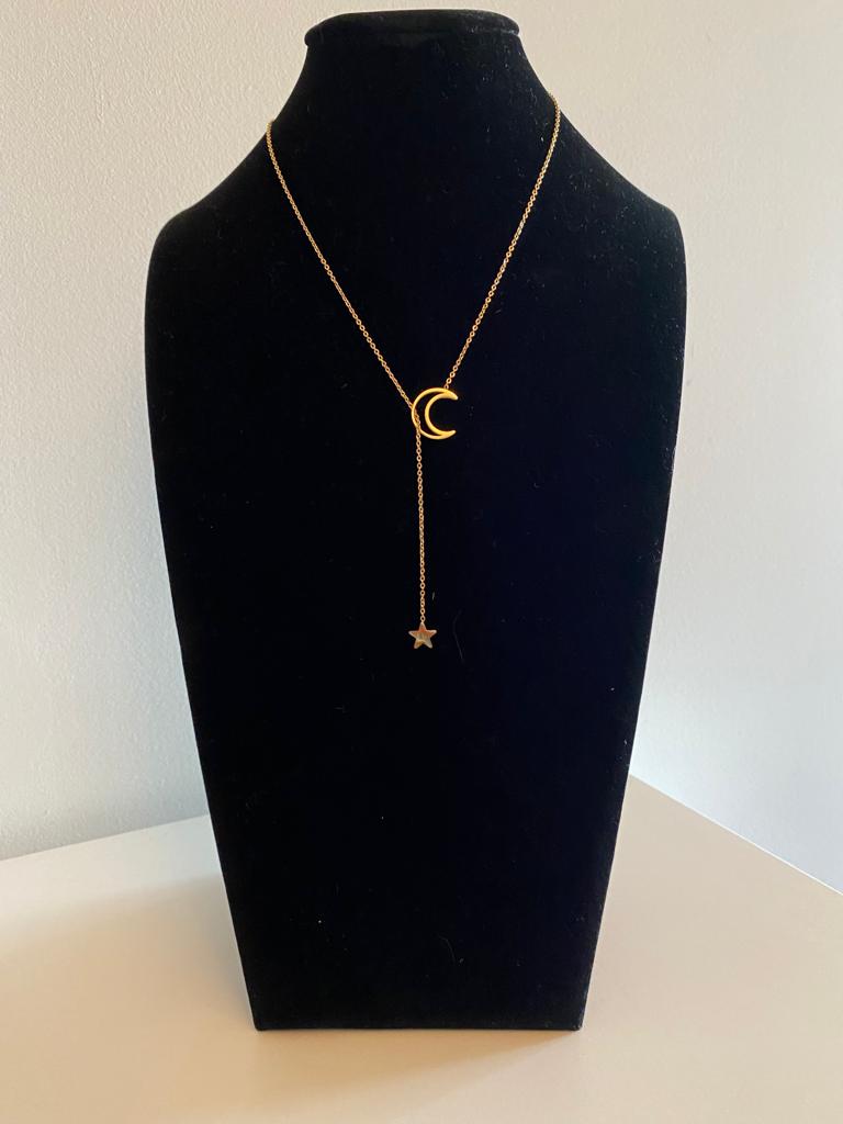 18K Gold Plated Stainless Steel Moon Star Pendant Necklace