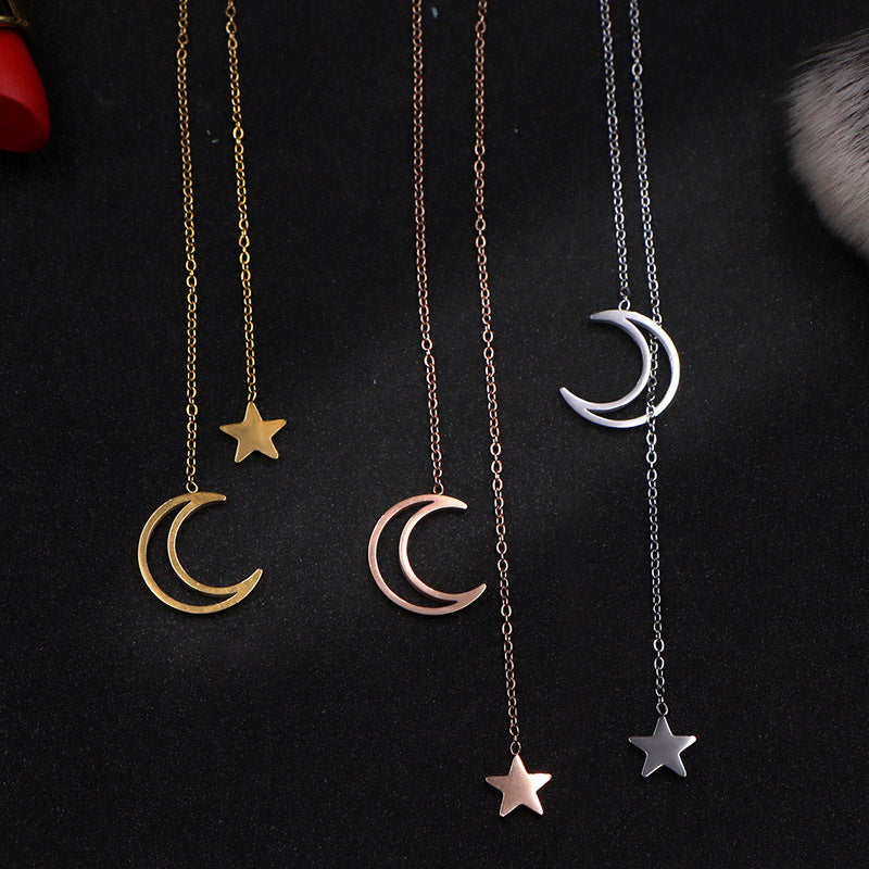 18K Gold Plated Stainless Steel Moon Star Pendant Necklace for Women