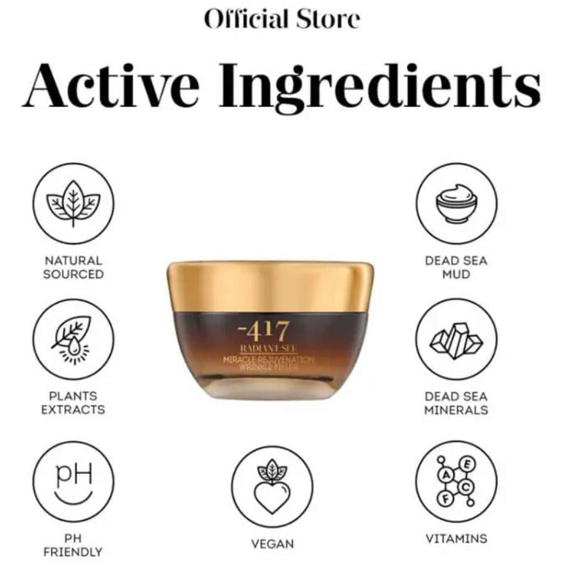 Precious Dead Sea mineral complex ~ From the lowest point on the Earth’s surface at – 417 meters below sea level which helps maintain optimal hydration levels for skin.