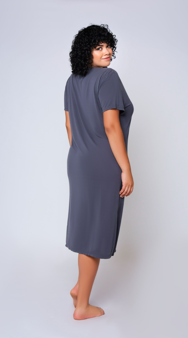 Soft viscose sleep dress with side slit.