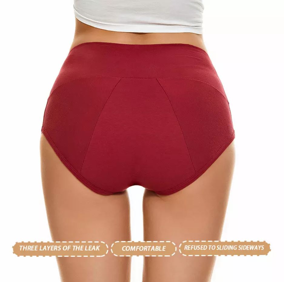 Women's Heavy Flow High Waist Menstrual Period Cotton Leak-Proof Underwear Panties